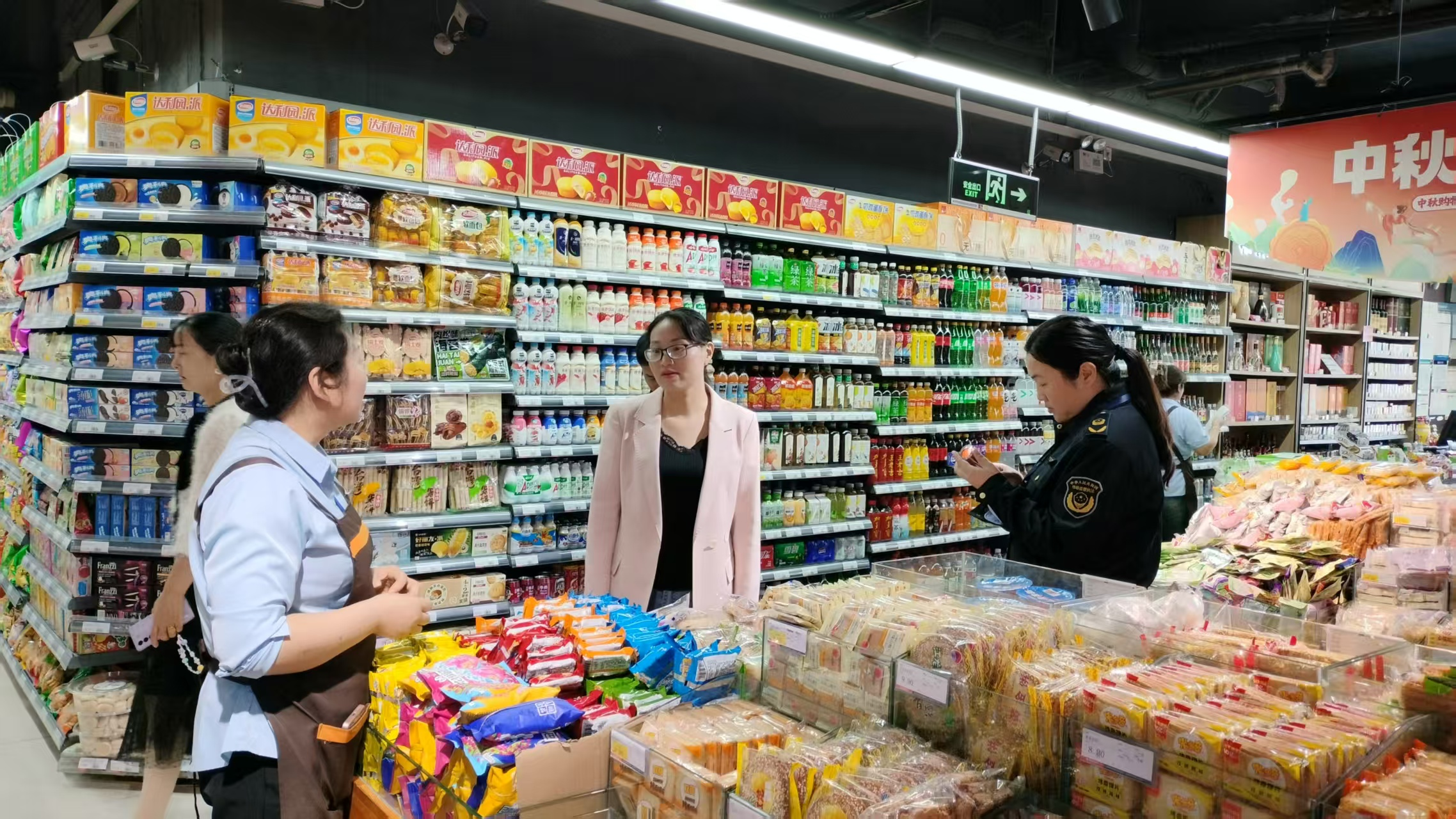 检查过程中,执法人员以商超食品区为核心,实施“清单式”排查。针对节庆食品采购、流通、销售服务各环节,重点查看了月饼、粮油、生鲜食品、酒类、饮料等热销食品。现场详细查阅了经营单位的证照资质、从业人员健康管理、食品原料采购索证索票与进货查验记录,要求经营者严格落实进货查验制度,确保食品来源可溯、质量可控,并向负责人重申食品安全主体责任,引导其诚信守法经营。针对检查中发现的风险隐患,执法人员现场提出整改意见,下达责令整改通知书,明确整改时限并将跟踪复查,并要求各经营单位严格落实食品安全主体责任,严把食品准入、储存、制作和销售关,确保所提供的食品安全可靠。