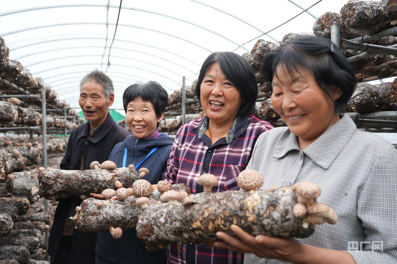 种植户手捧香菇喜笑颜开(央广网发 杜福建 摄)