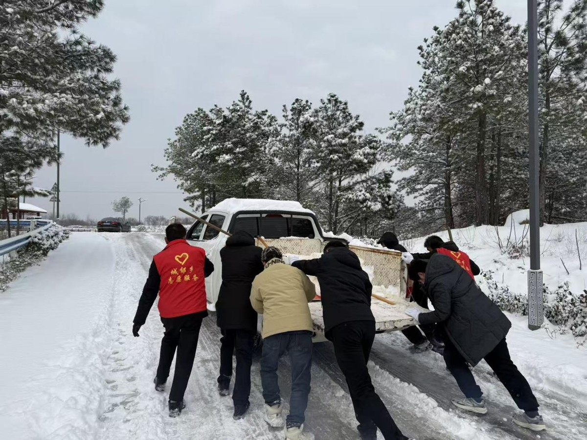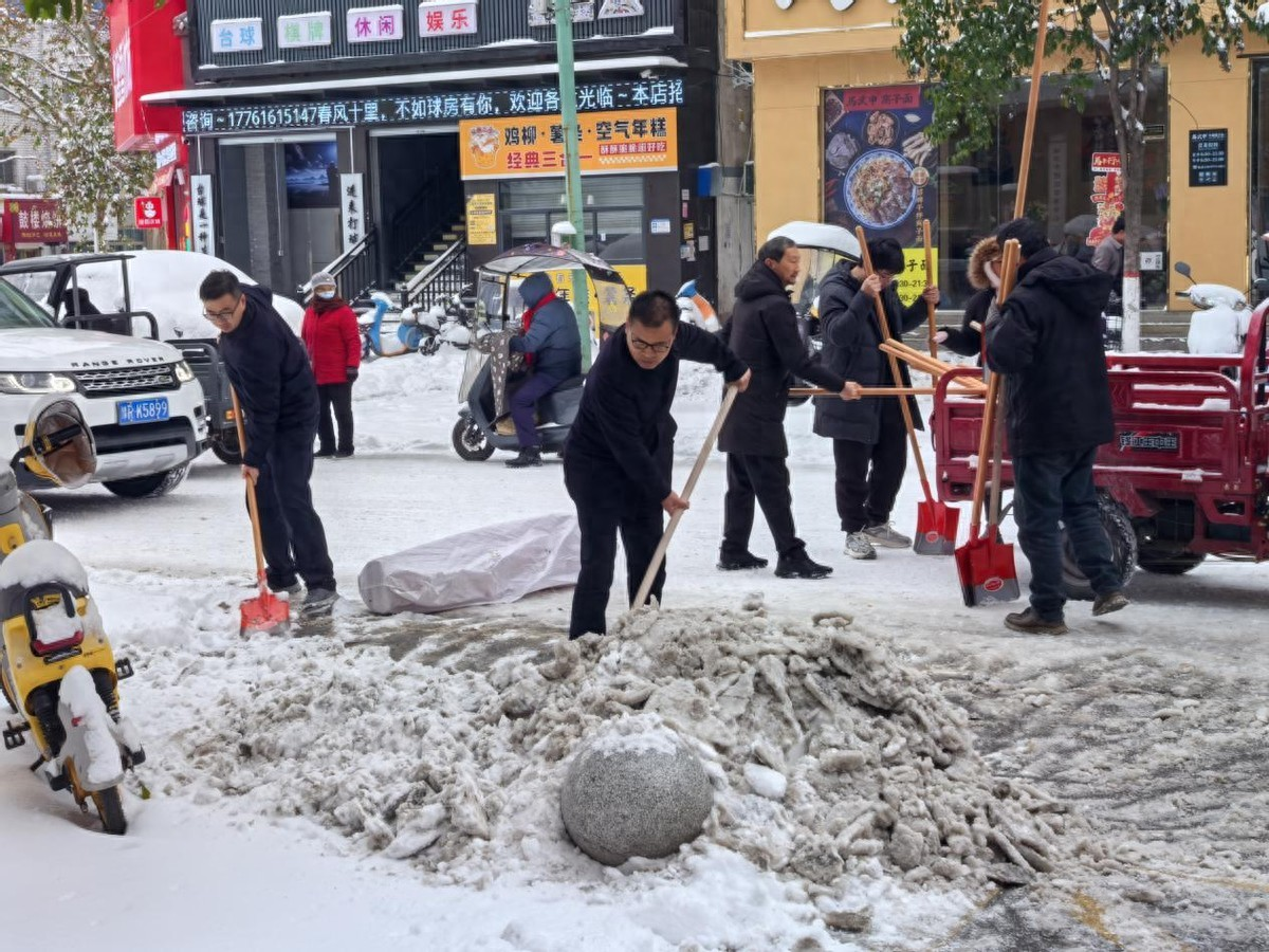闻雪即动,打好“主动仗”。雪情就是命令。降雪次日,城郊乡党员干部、文明实践志愿者迅速集结,按照分工奔赴各自责任片区。乡班子成员充分发挥带头作用,以身作则,带领分管领域的乡村干部、志愿者,携带清雪工具和融雪物资,分段包干,对世纪大道、“十八拐”、刘湾佛教学院沿线、通村主干道以及村组道路等进行集中清理。大家不畏严寒,挥锹铲雪、撒盐融冰,忙碌的身影在雪景中构成了一道温暖的风景线,全力抢通保障主干道安全畅通。