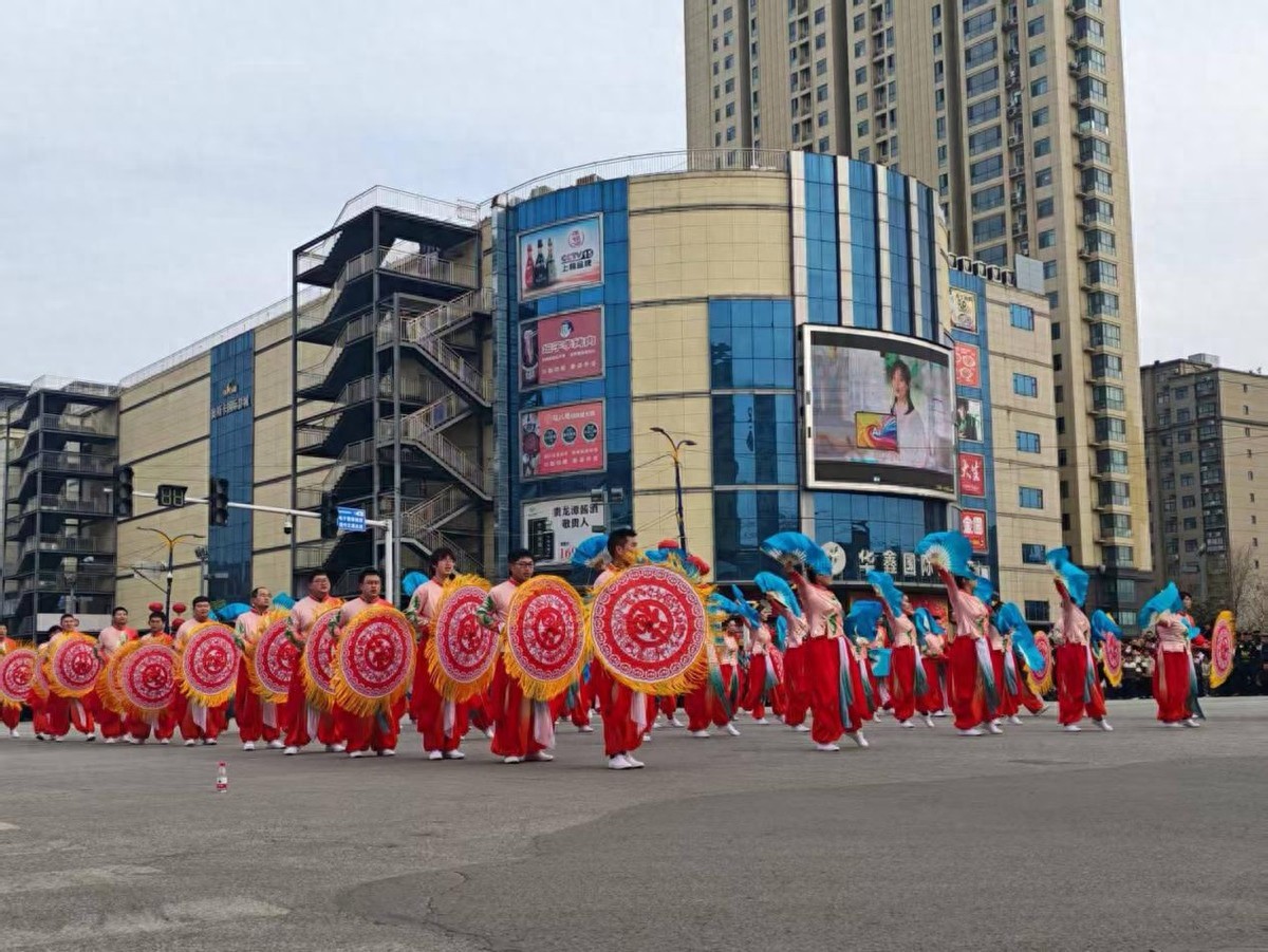下午,城郊乡代表队在县政府广场集中演出后,沿街区展演路线缓缓前行,成为街头一道流动的风景线。表演者们手持彩扇、撑着花伞,身着鲜艳服饰,踏着欢快节奏,迈着整齐步伐,时而变换队形,时而驻足展演,将传统民俗的韵味与新时代的活力完美融合。沿途群众纷纷驻足观赏、拍照留念,掌声、欢呼声与锣鼓声交织在一起,处处洋溢着喜庆热闹的节日气息。