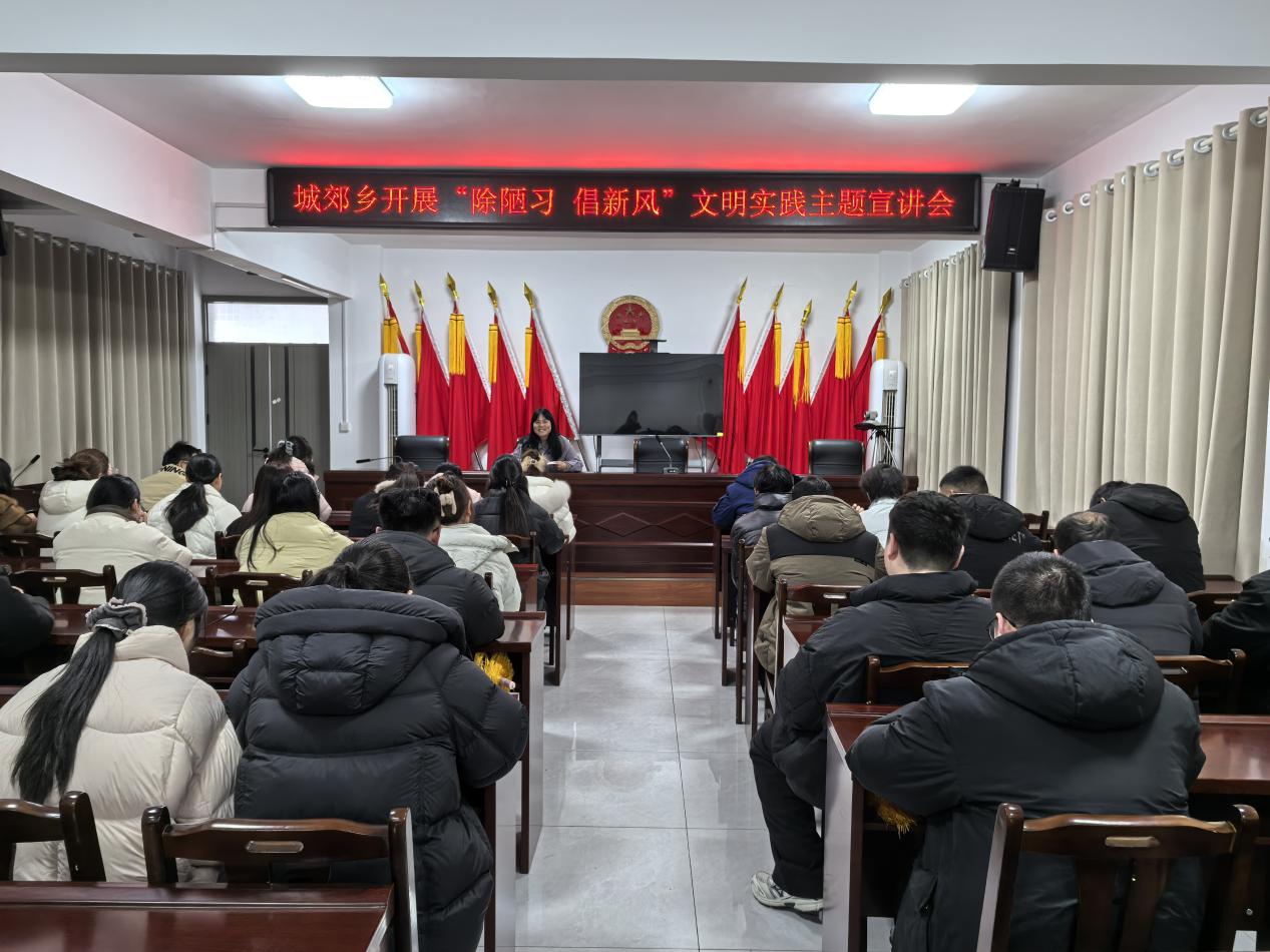 宣讲会后,城郊乡各村迅速行动,积极开展多种形式的宣传活动。工作人员与志愿者深入村组农户,通过发放移风易俗倡议书、上门面对面宣讲等方式,向群众细致讲解移风易俗相关要求,倡导婚事新办、丧事简办、小事不办,引导群众摒弃陈规陋习,争做文明新风的践行者,让文明理念入耳、入脑、入心。